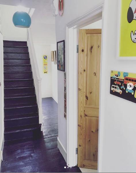 Dark Blue Painted Floors - What is perfect combination floor maroon tiles color for stairs.